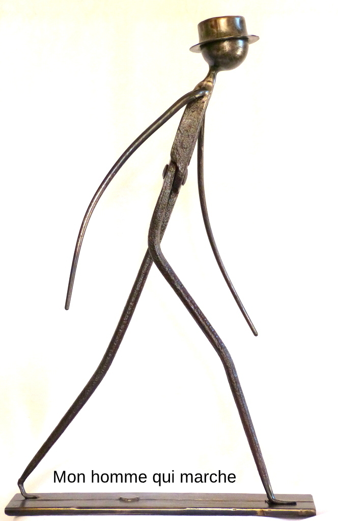 En 2016...à 60 ans, l'heure de la retraite sonne...il me faut trouver une occupation....alors, je rallume la forge et j'enfile mon tablier de soudeur........en 2017 poussé par quelques amis, je crée ma micro entreprise et je me lance dans la création de pièces uniques et soignées en métal.....essentiellement sur une base de vieux outils accumulés au fil du temps.